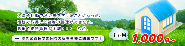 「Yネット不動産」では、この空き家についてお悩みの家主さまのために、お手軽にご利用できる「空き家管理サービス」を提供いたします。